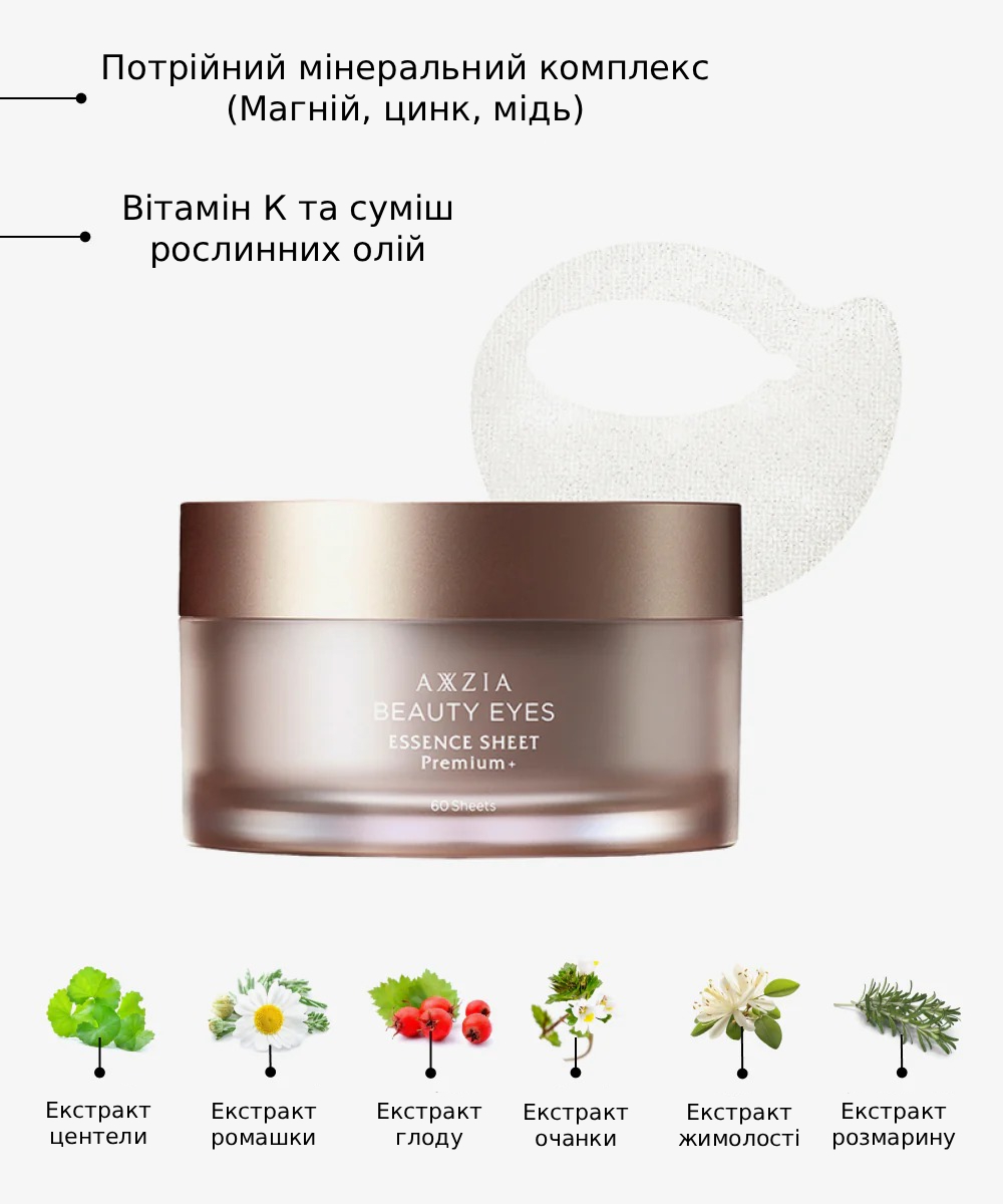 Вони забезпечують ефект оклюзії, глибоко зволожують тонку шкіру повік, допомагають прибрати сліди втоми й повертають тонус. Ідеальні для: